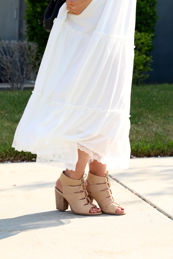 There is nothing I love more than white! And this white maxi from Chicwish is right at the top! I love this! I love how flawy, how romantic, and how it screams summer! It is so feminine! I love the chiffon and the lace! I paired it with my favorite cropped jacket and my “go-to” shoes right now, these Hinge sandals! This is at the top of my list of looks! Hope you guys enjoy and are having a great week!